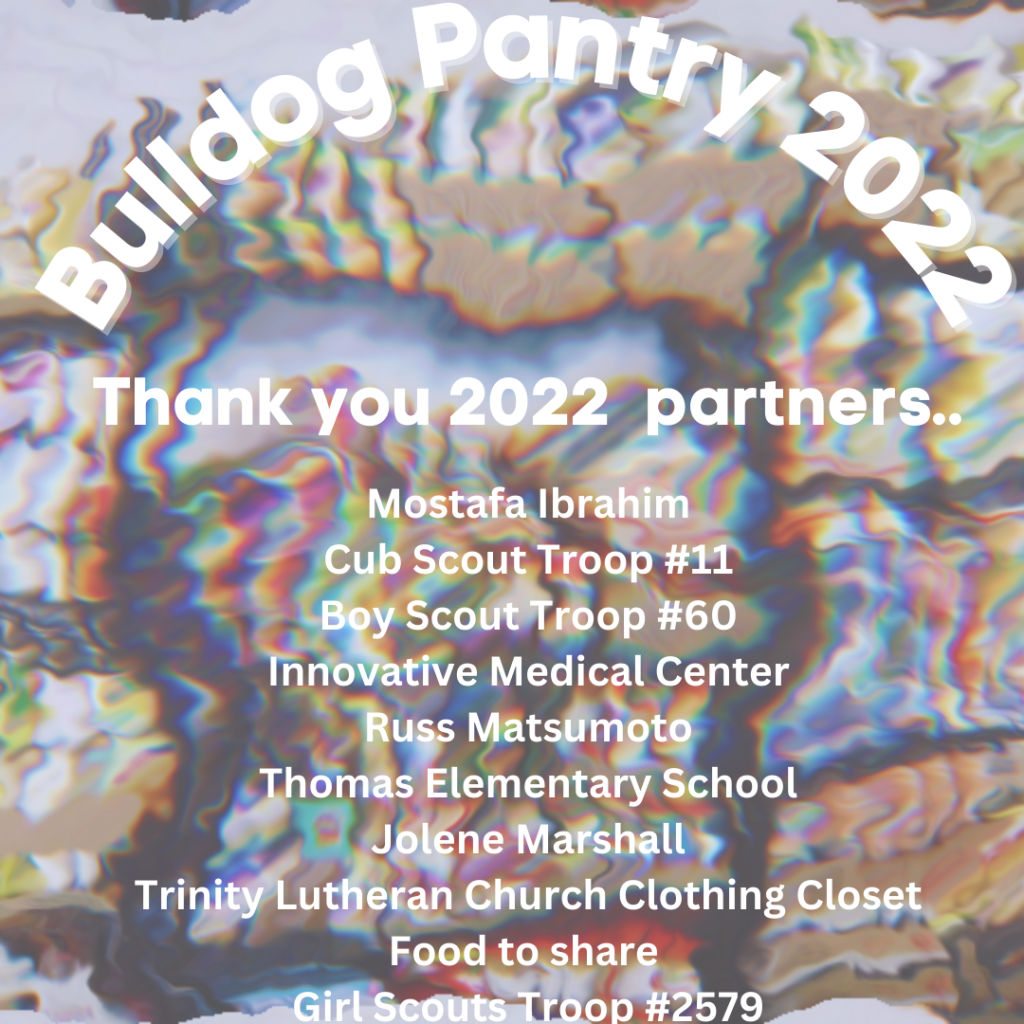 We are grateful to all those who have donated to the Bulldog Pantry so far this year. They are listed below along with countless families who have dropped of food donations. Without them, we would not be able to continue our work.