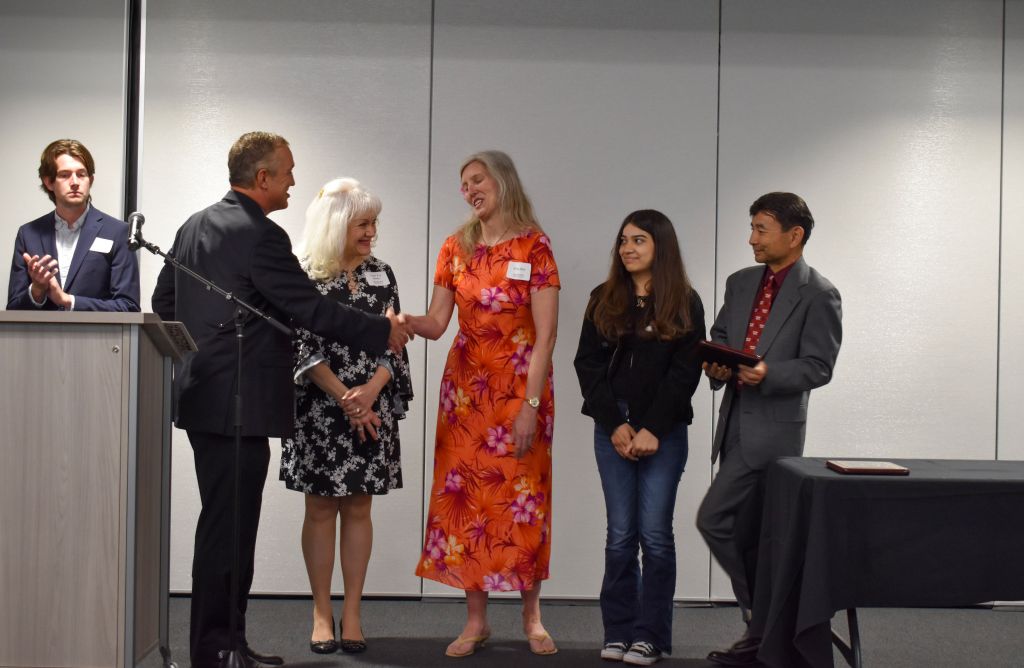 On May 3rd the Bulldog Pantry was honored with the Don Romsa Spirit of Service Award from Fresno State University. The award recognizes a local community benefit organization that has demonstrated an exceptional commitment to partnering with Fresno State faculty, students, and staff and has had a positive, lasting impact on the communities they serve.