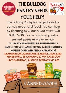 The Grocery Outlet store at Belmont & Peach is collecting food for the Bulldog Pantry. Bring in food or buy something in store to donate and be entered to will a hammock plus a $100 grocery gift card.