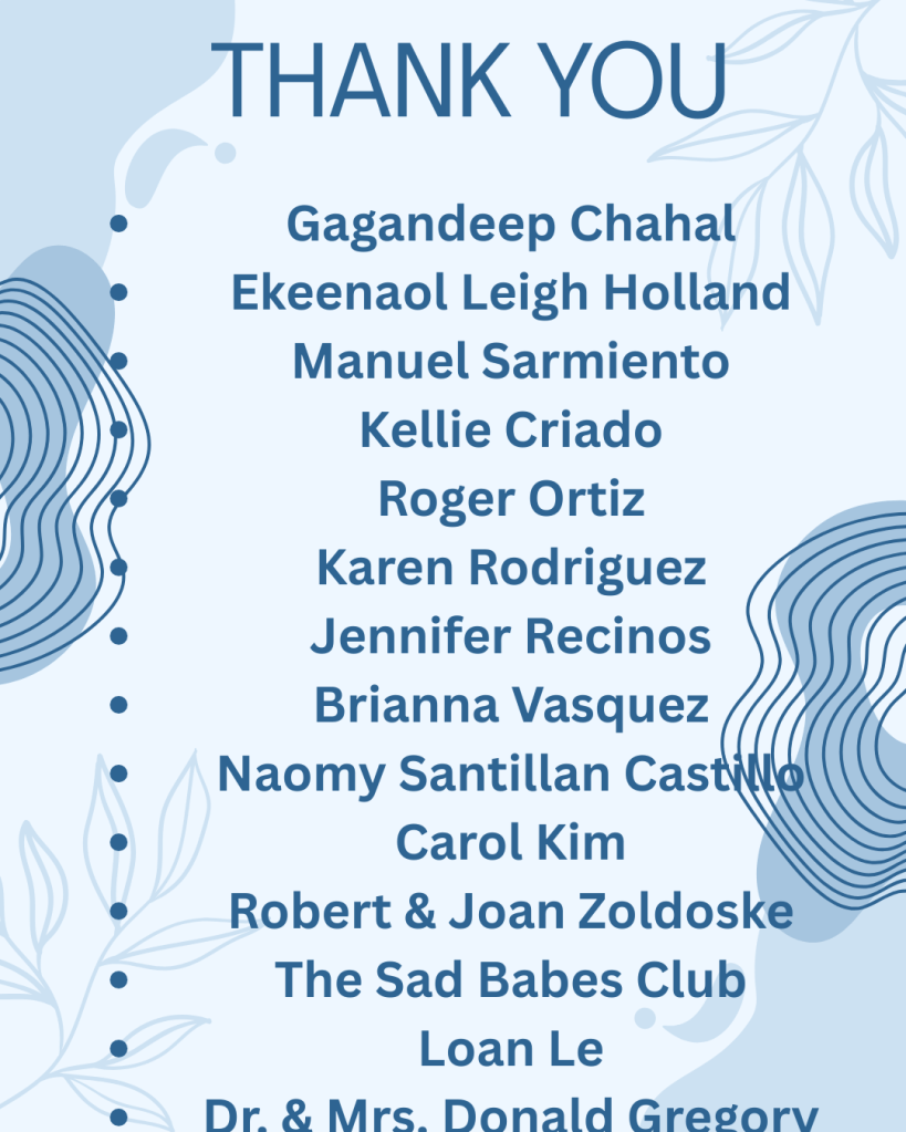 We cannot thank you enough for your hard work and dedication! From the bottom of our hearts, thank you!